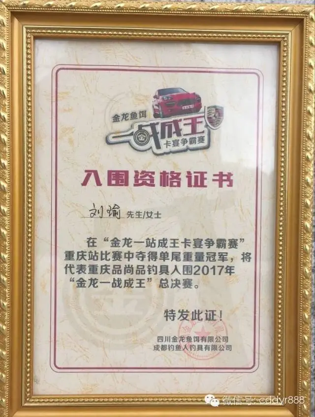 康宇庆、唐有均、古晓勇、余陈升获得八等奖;永川飞逊曼钓具总经理刘长春为八等奖获得者颁奖。