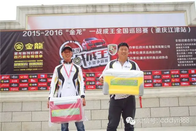 大足飞逊曼钓具连锁总经理周洪、重庆江津华祥渔具总经理昌志文共同为单尾奖获得者颁奖。