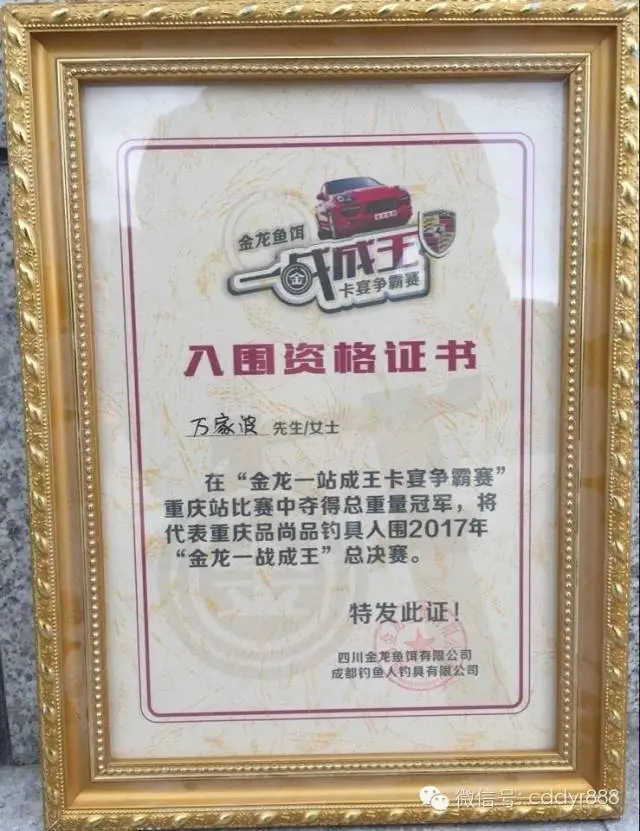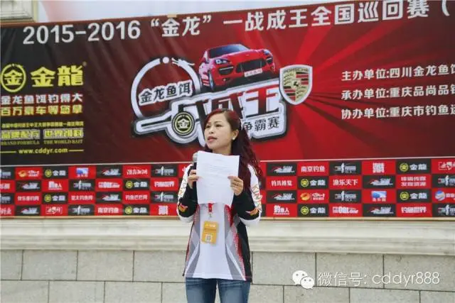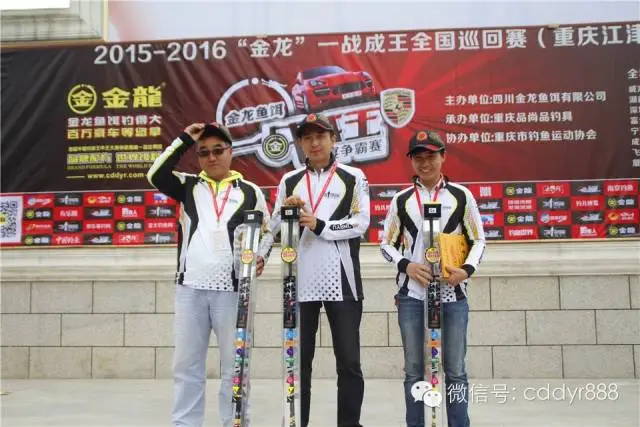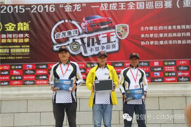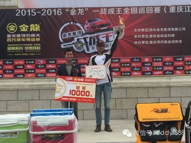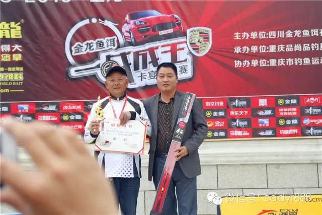 四川金龙鱼饵有限公司董事长左贤金为冠军万家波颁奖!