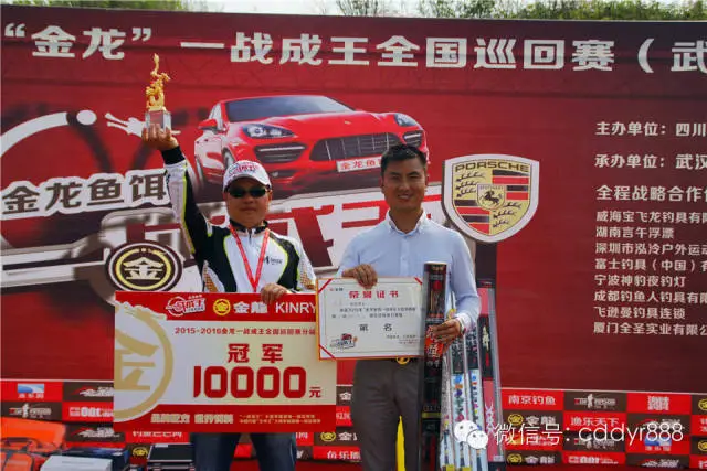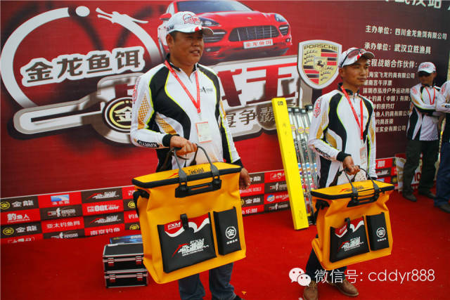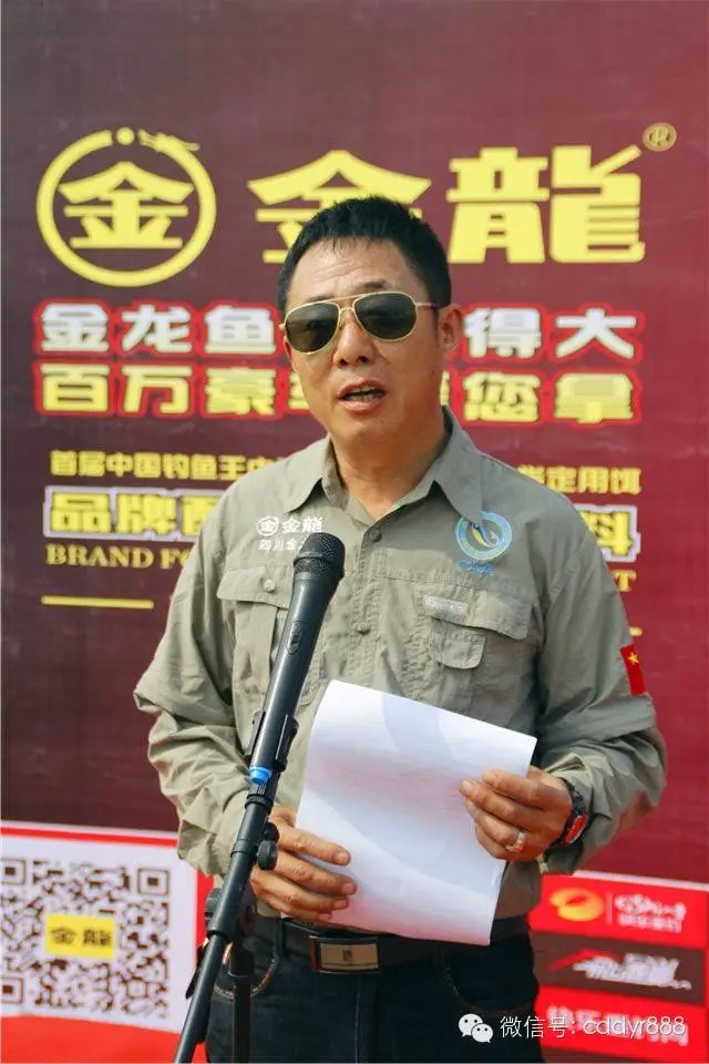 四川金龙鱼饵有限公司董事长左贤金为冠军周勇颁奖!