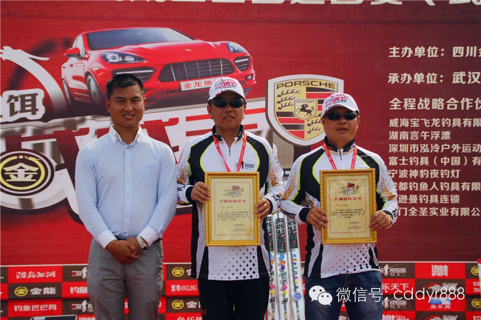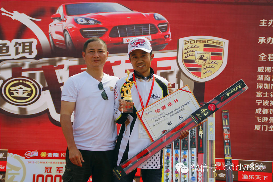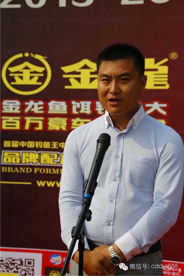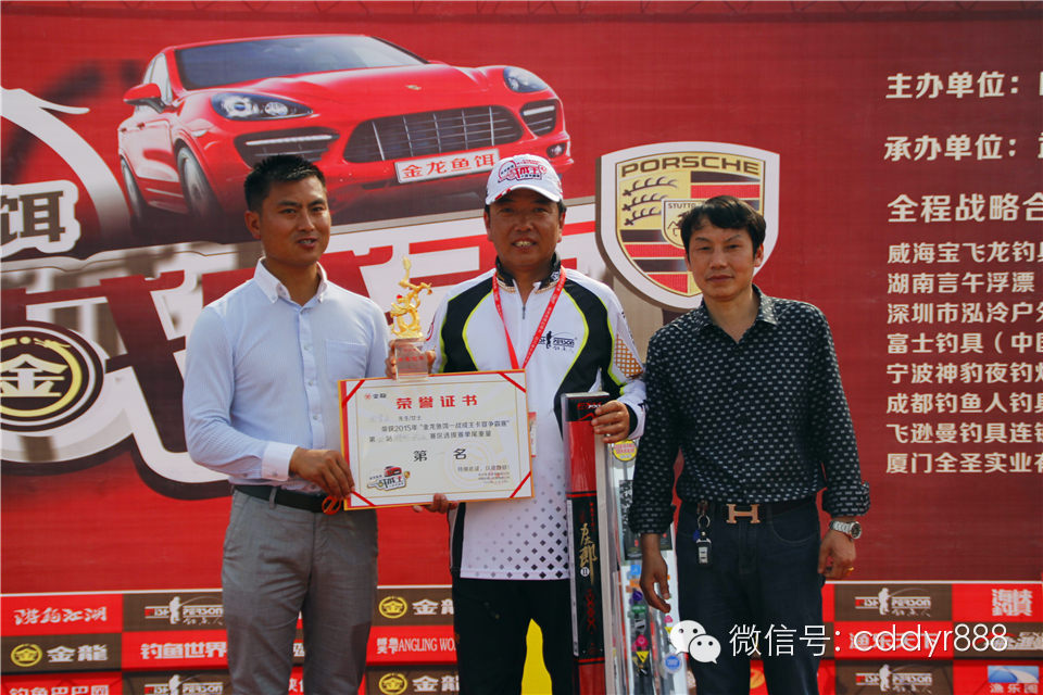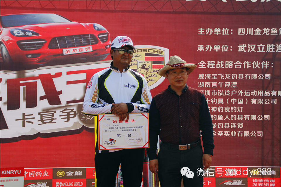 四川金龙鱼饵有限公司董事长左贤金为冠军周勇颁奖!