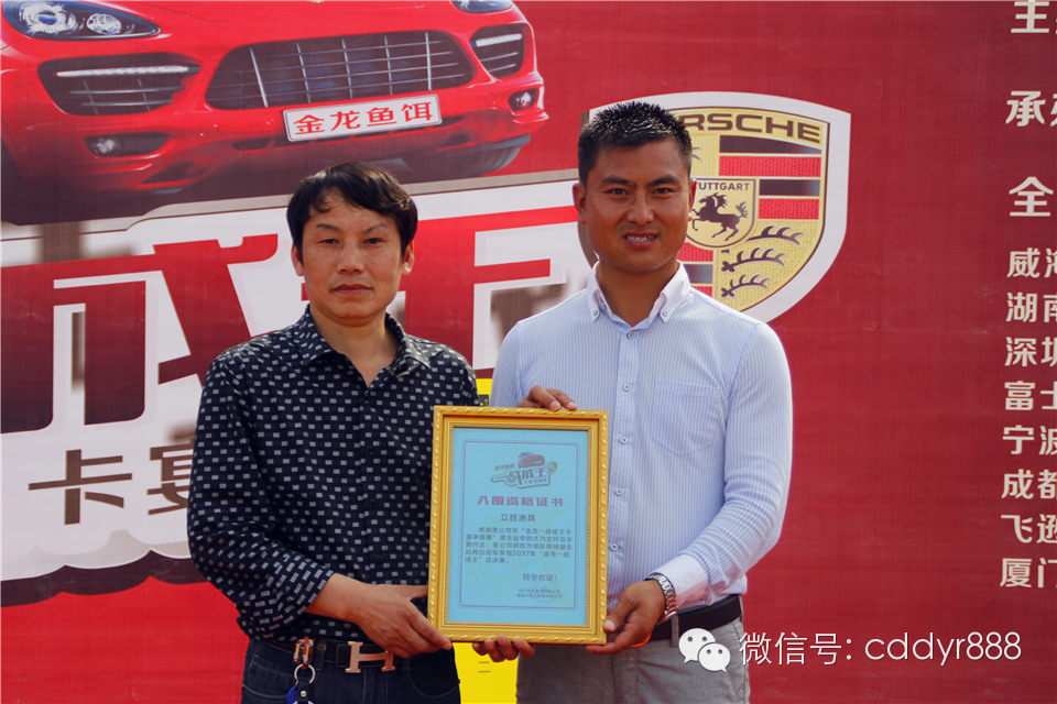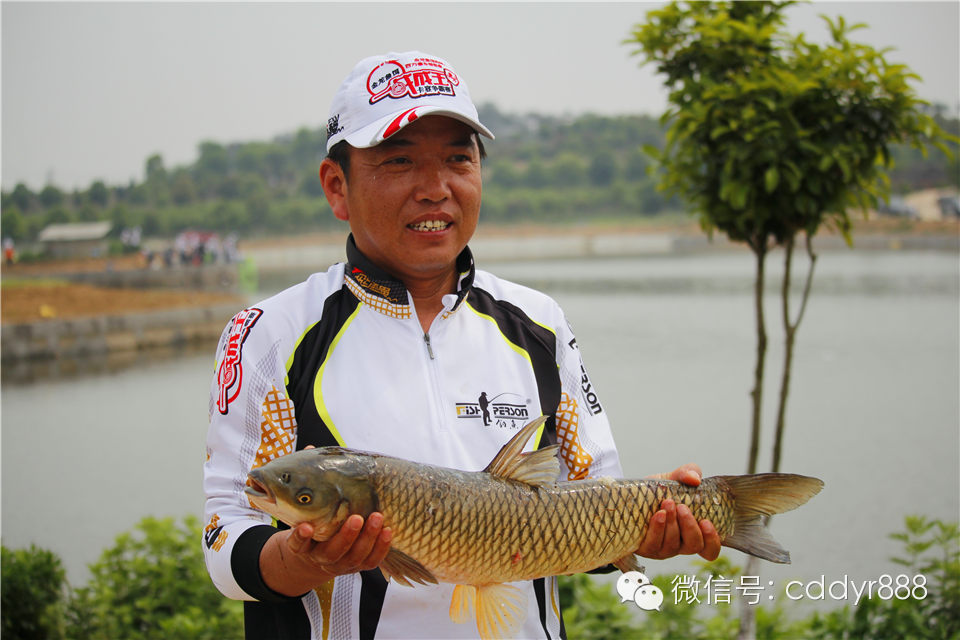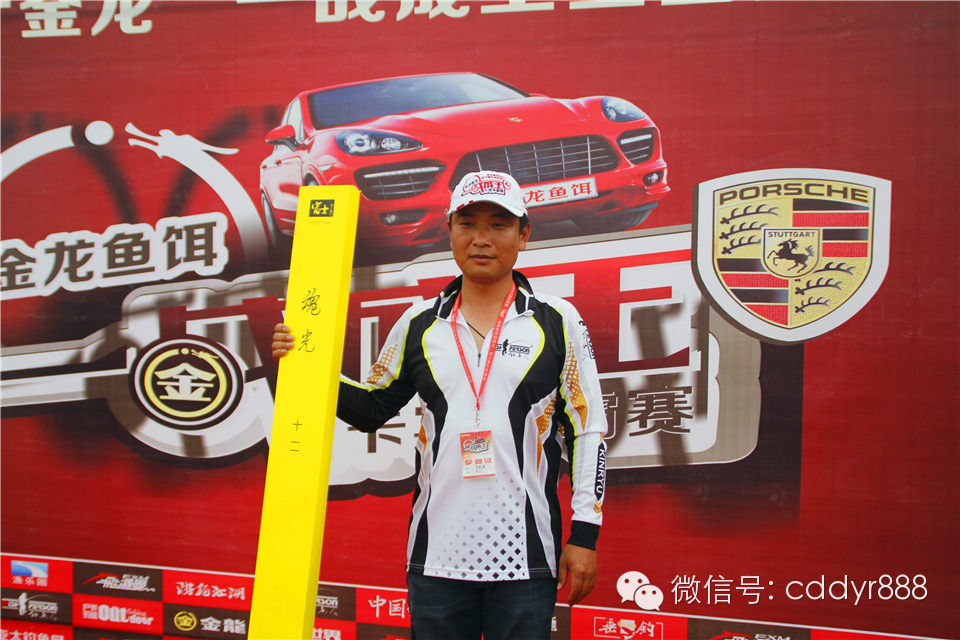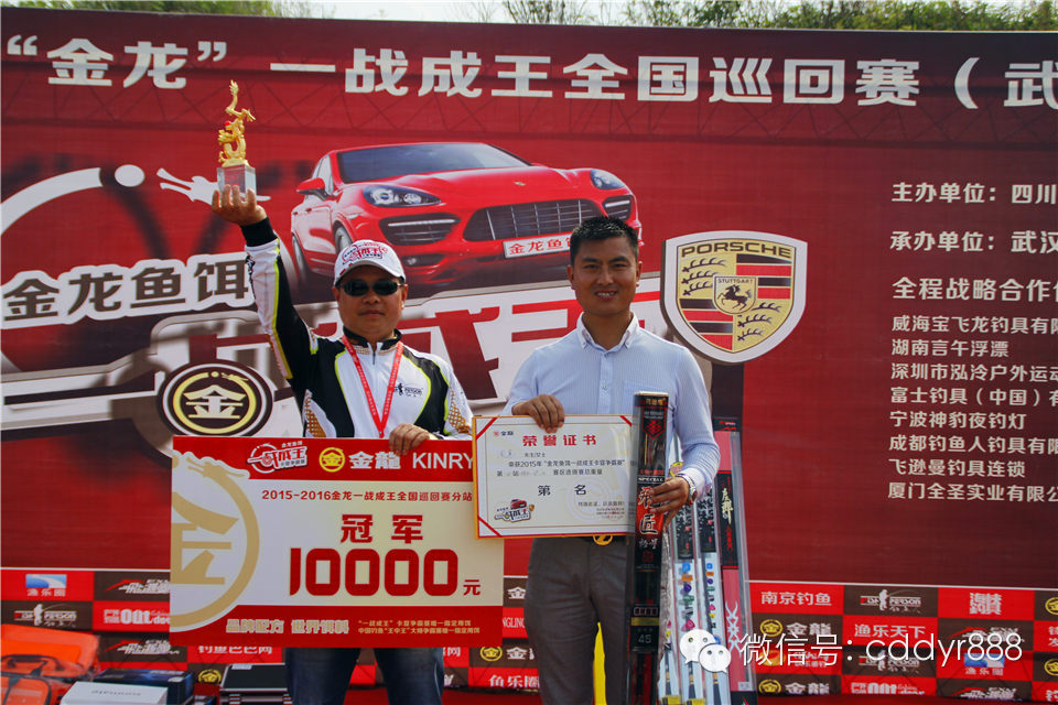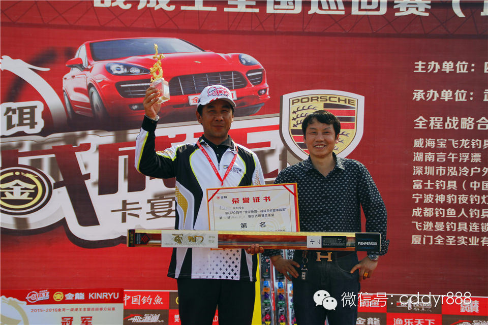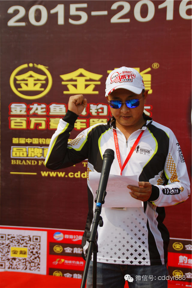 四川金龙鱼饵有限公司董事长左贤金为冠军周勇颁奖!