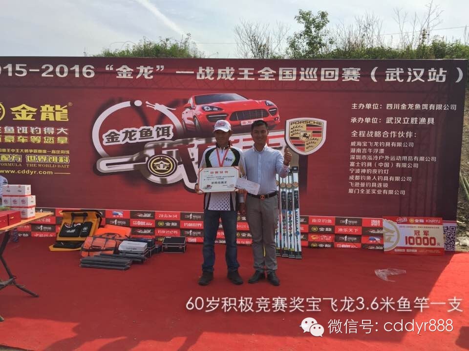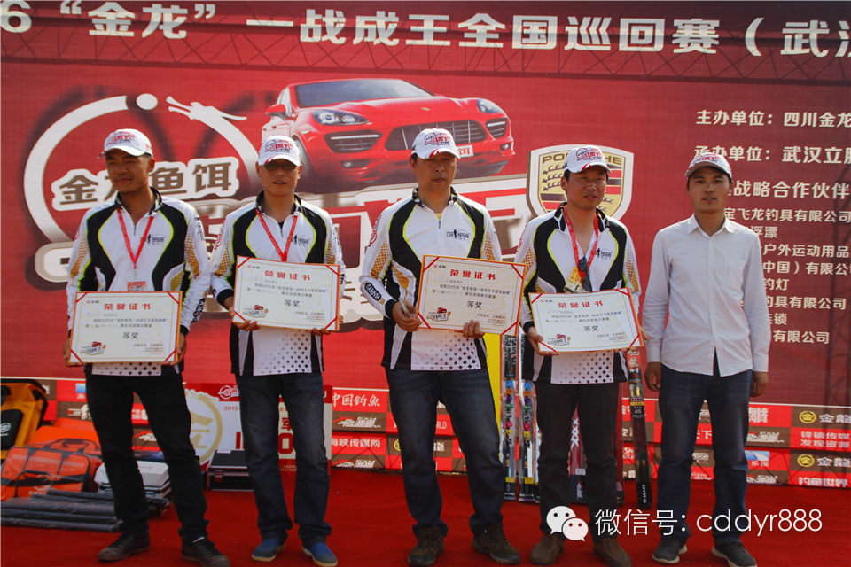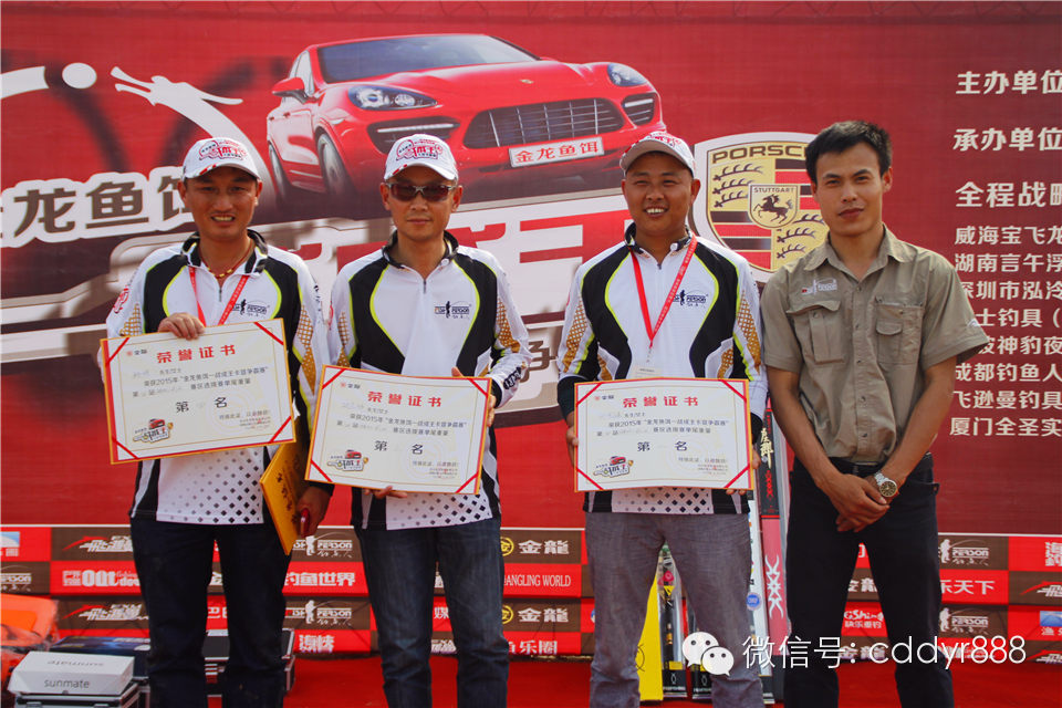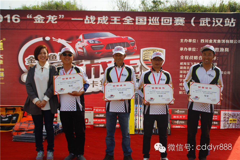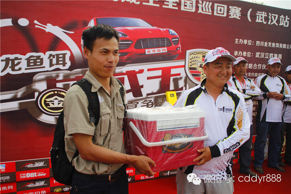 四川金龙鱼饵有限公司武汉大区经理梁绍涛为单尾二、三、四名颁奖。