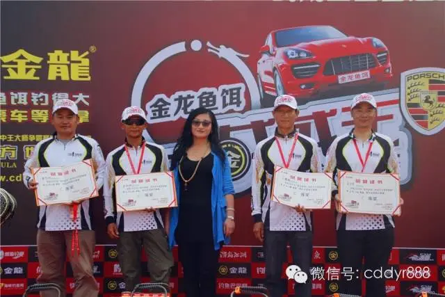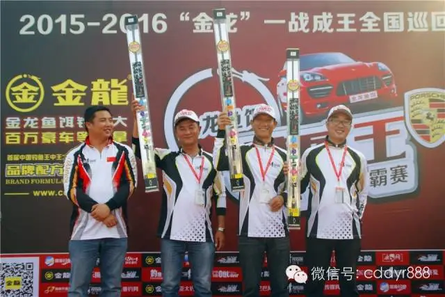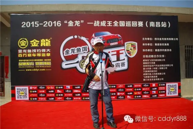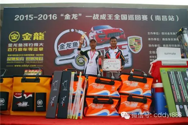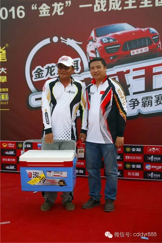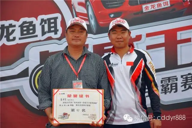四川金龙鱼饵有限公司董事长左贤金为冠军周伟颁奖!