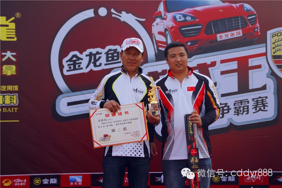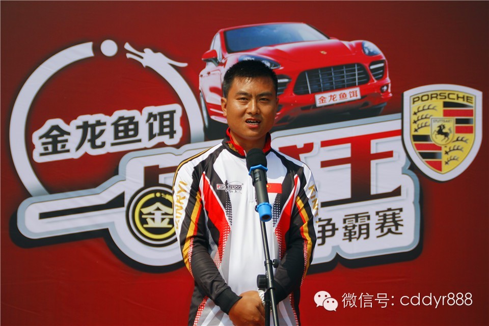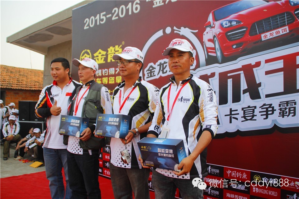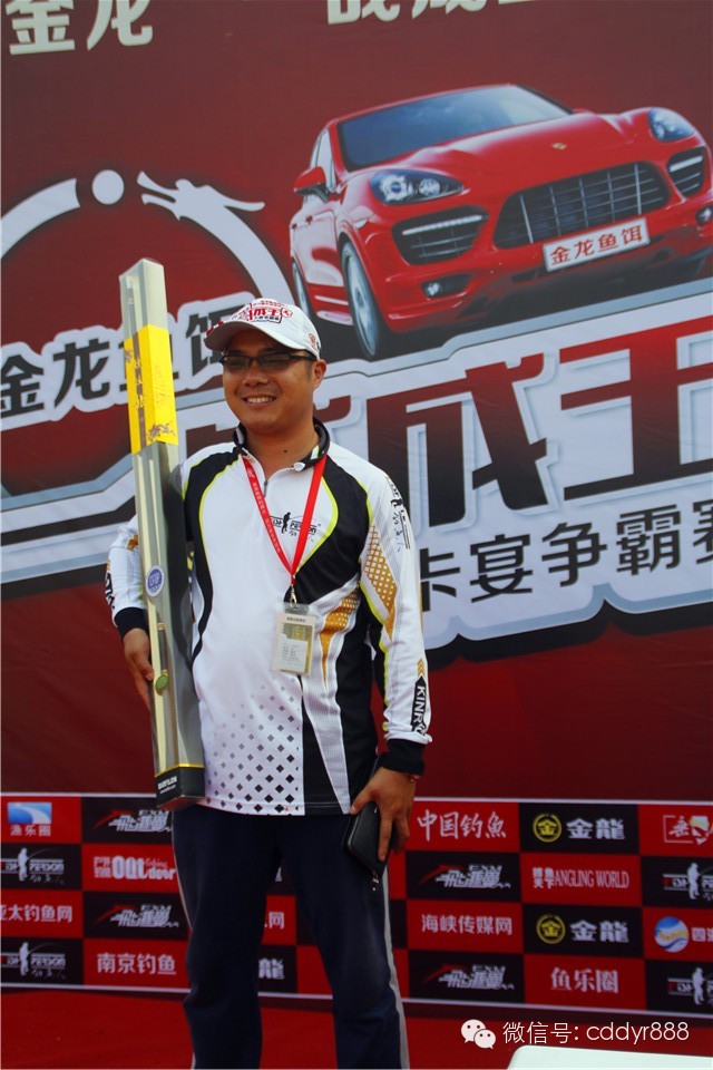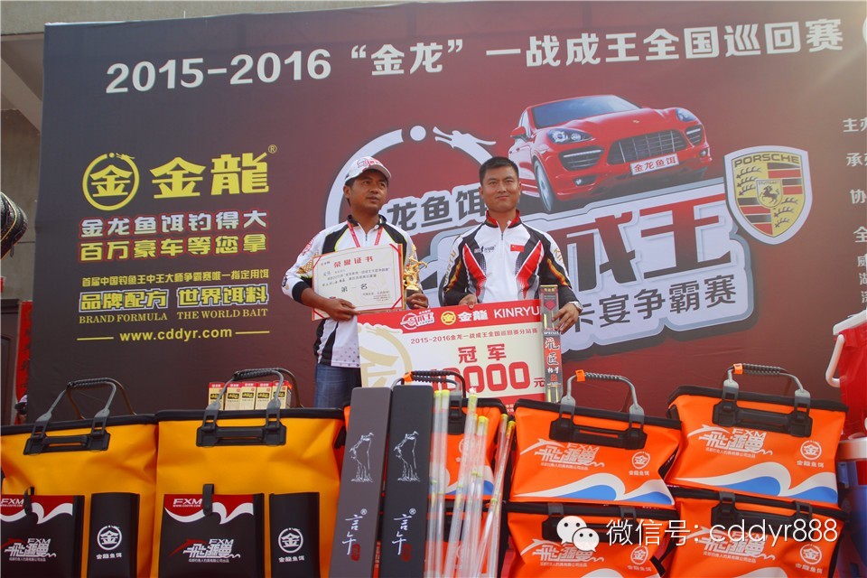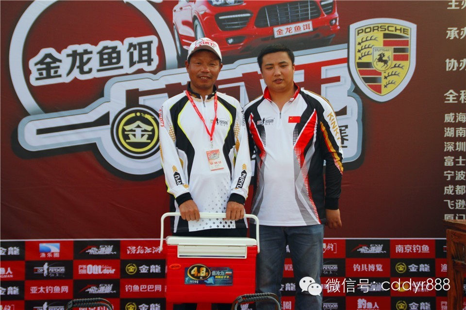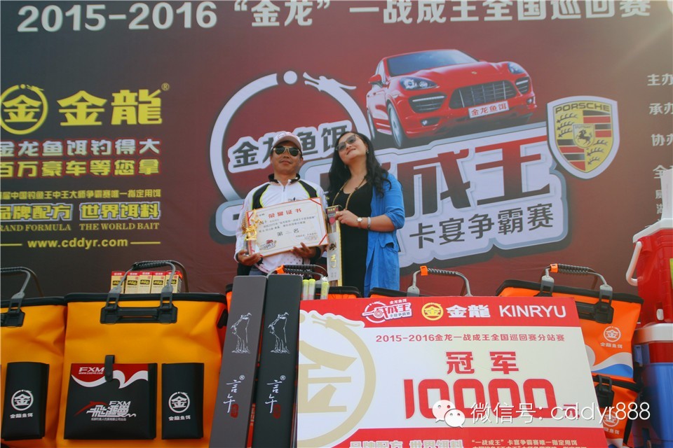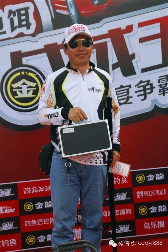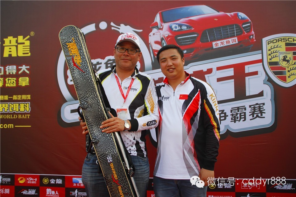 四川金龙鱼饵有限公司董事长左贤金为冠军周伟颁奖!