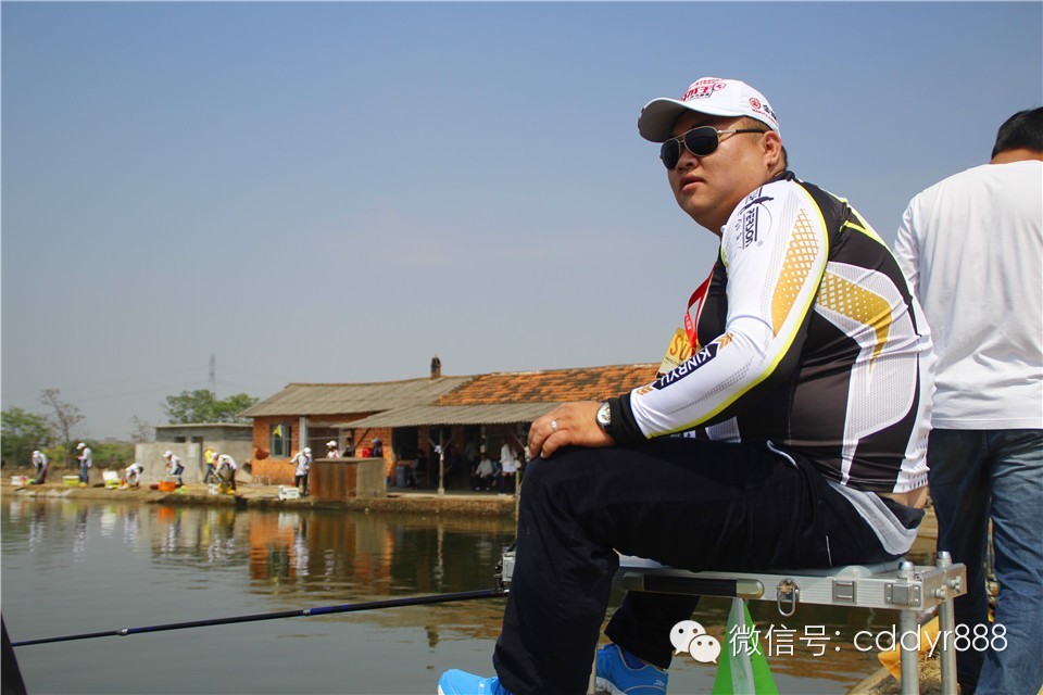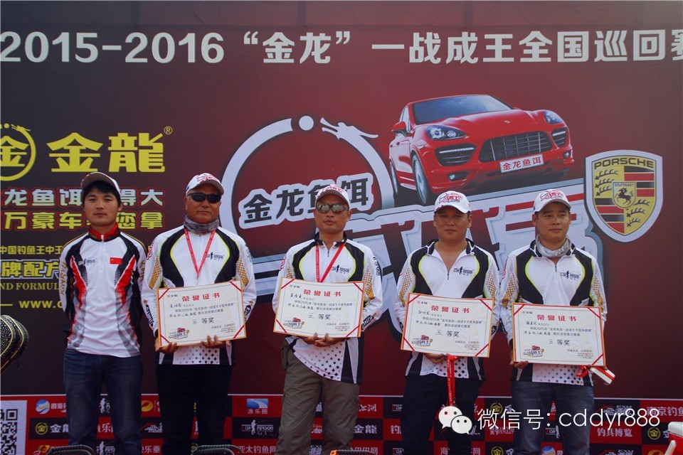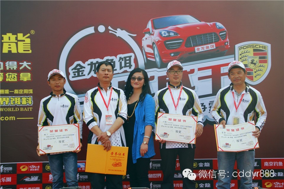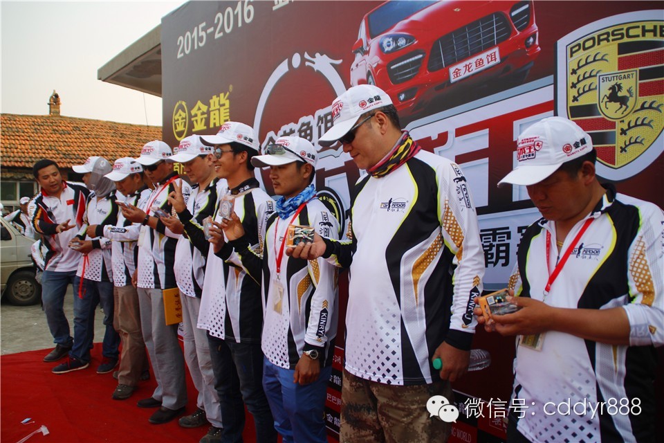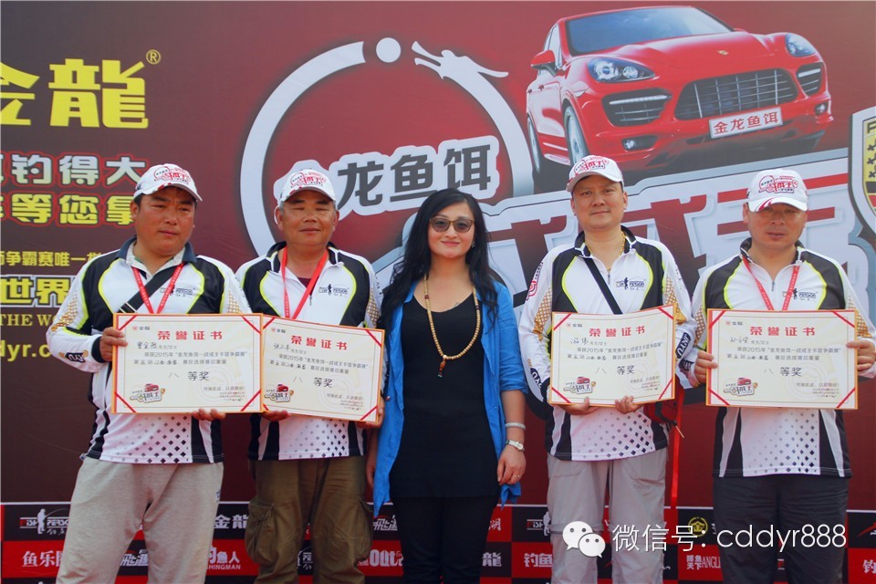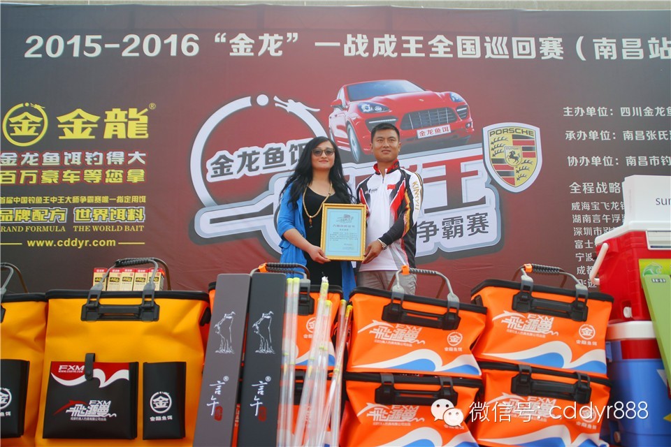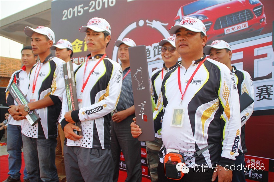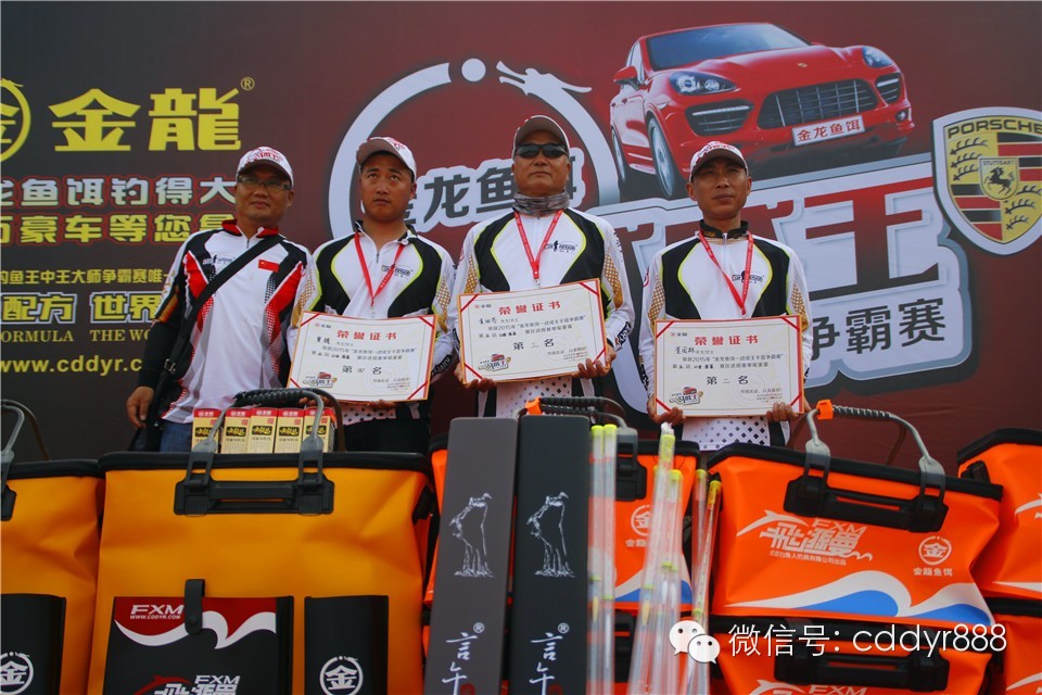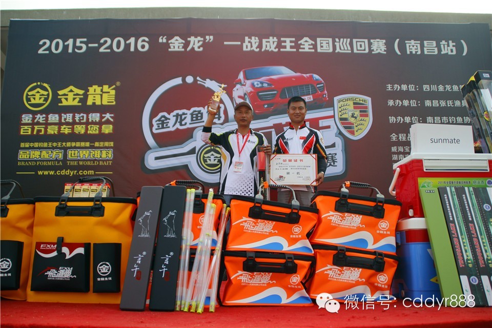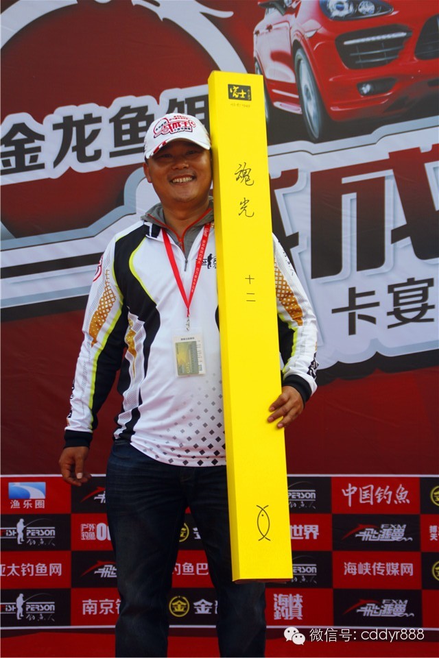 四川金龙鱼饵有限公司董事长左贤金为冠军周伟颁奖!