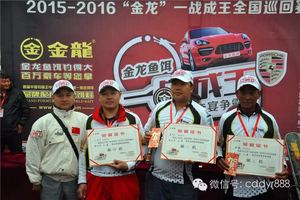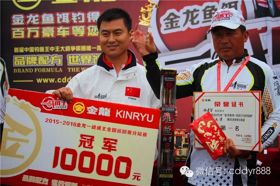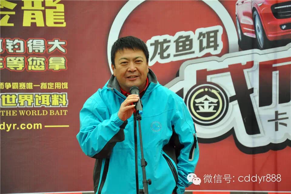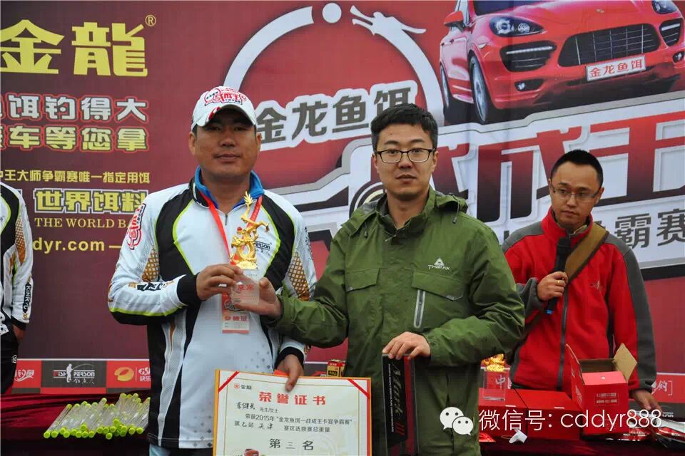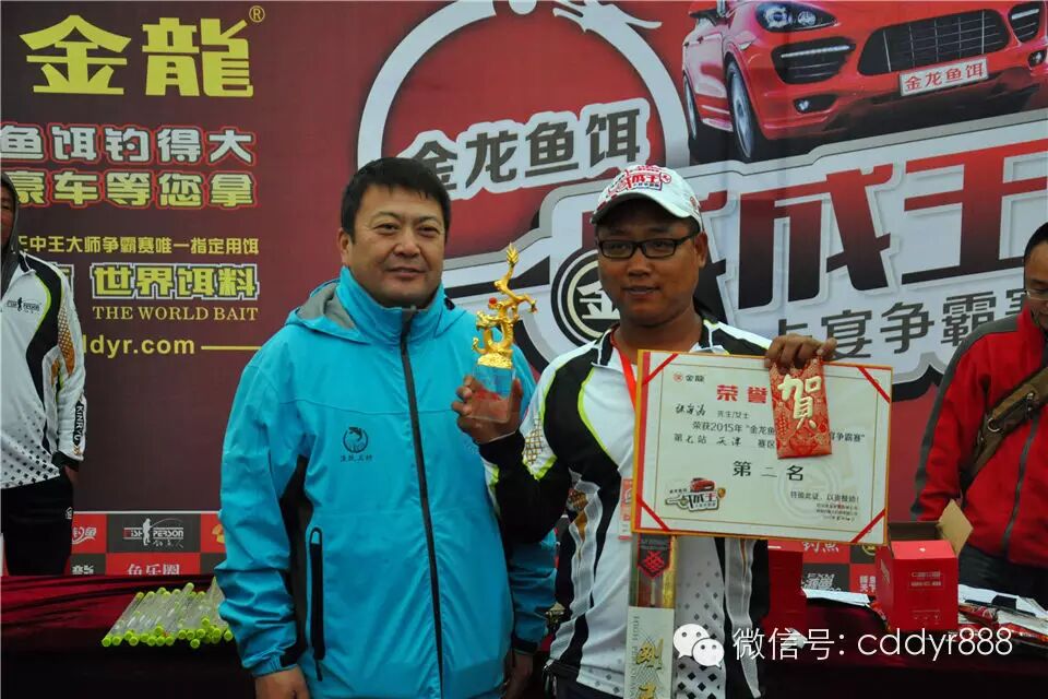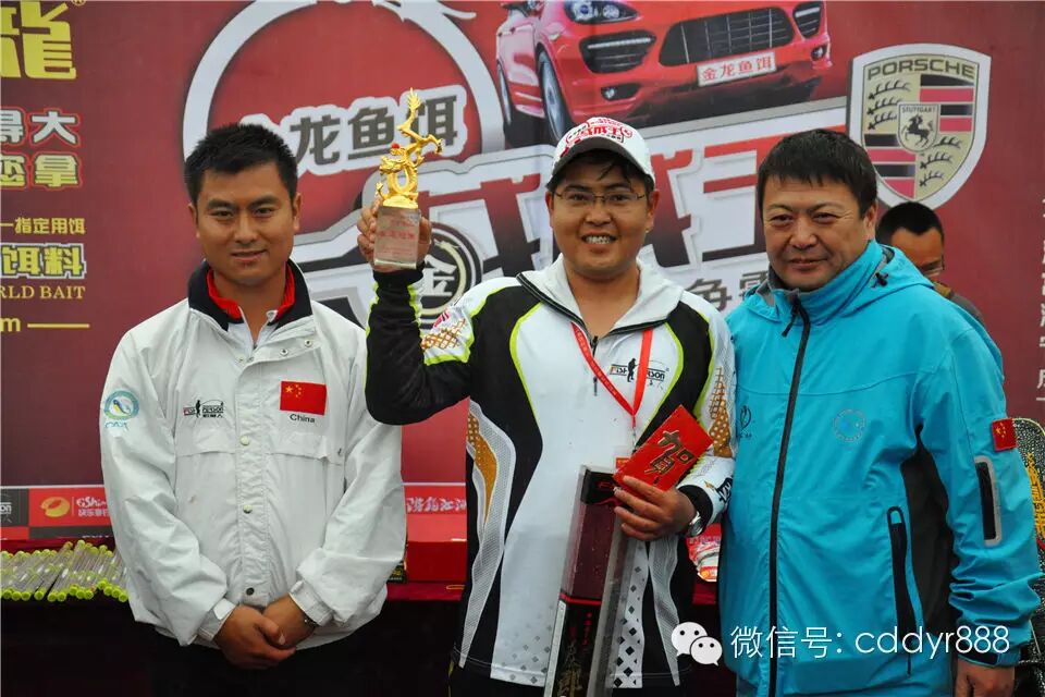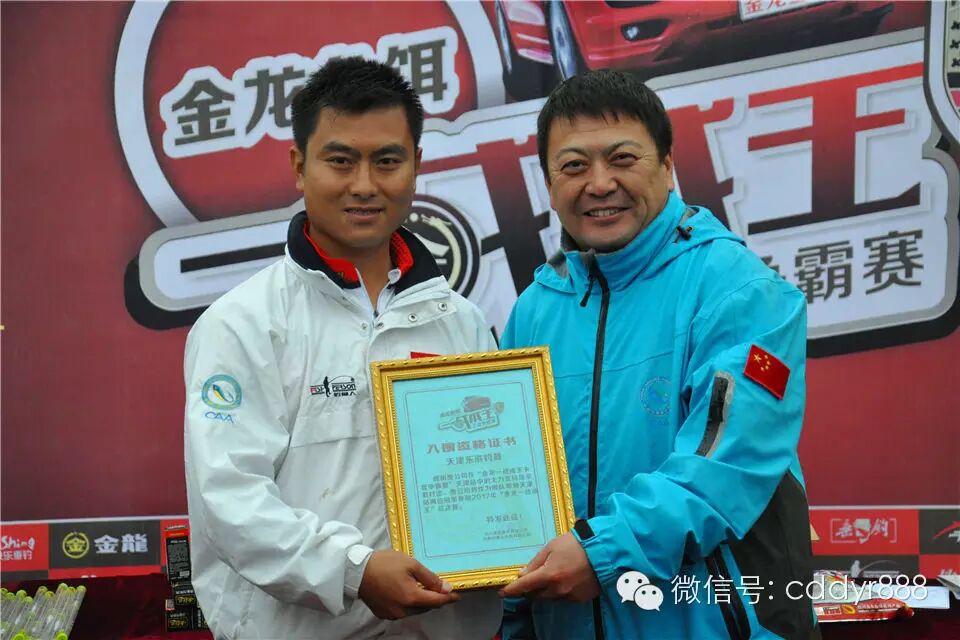 四川金龙鱼饵有限公司董事长左贤金为冠军杨建军颁奖!