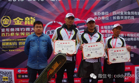 四川金龙鱼饵有限公司北方区域经理向佳川为单尾二、三、四名颁奖。