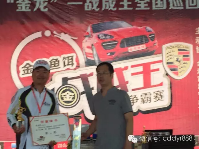 四川金龙鱼饵有限公司董事长左贤金为冠军李效义颁奖!