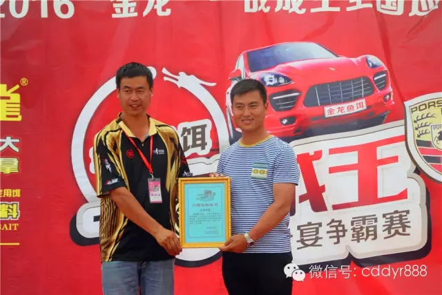 四川金龙鱼饵有限公司北方区域经理向佳川为第四名孙统科颁奖!