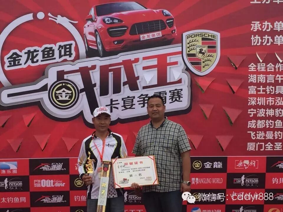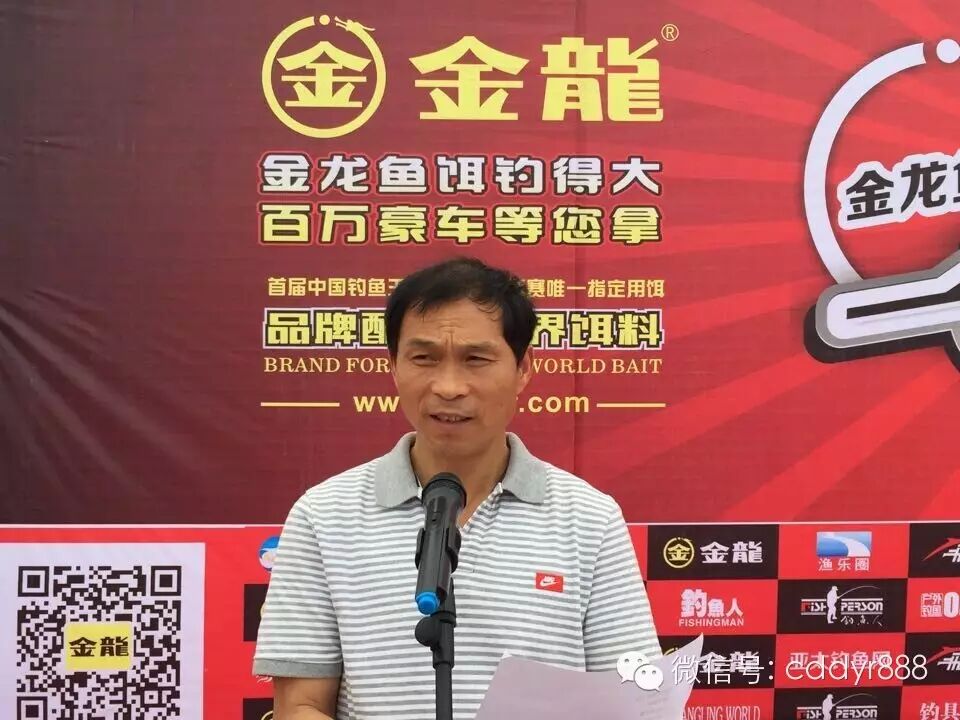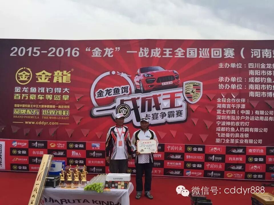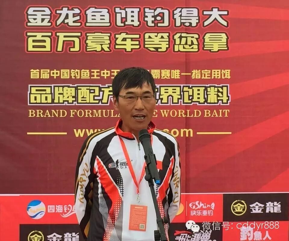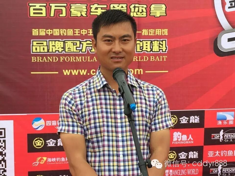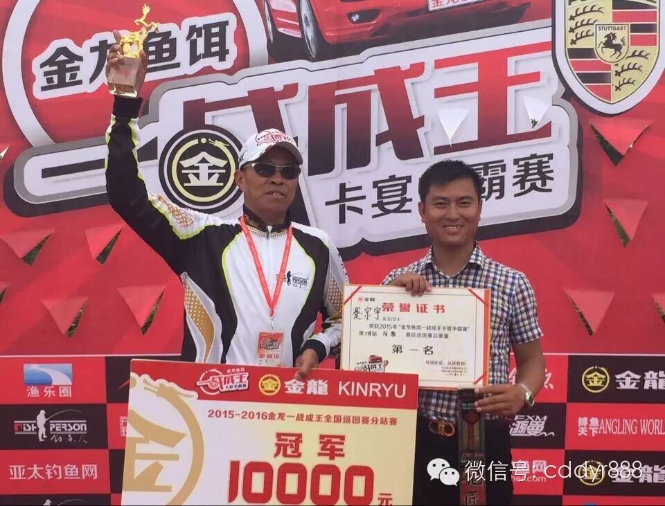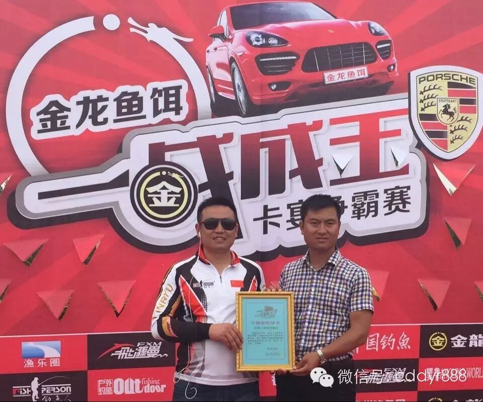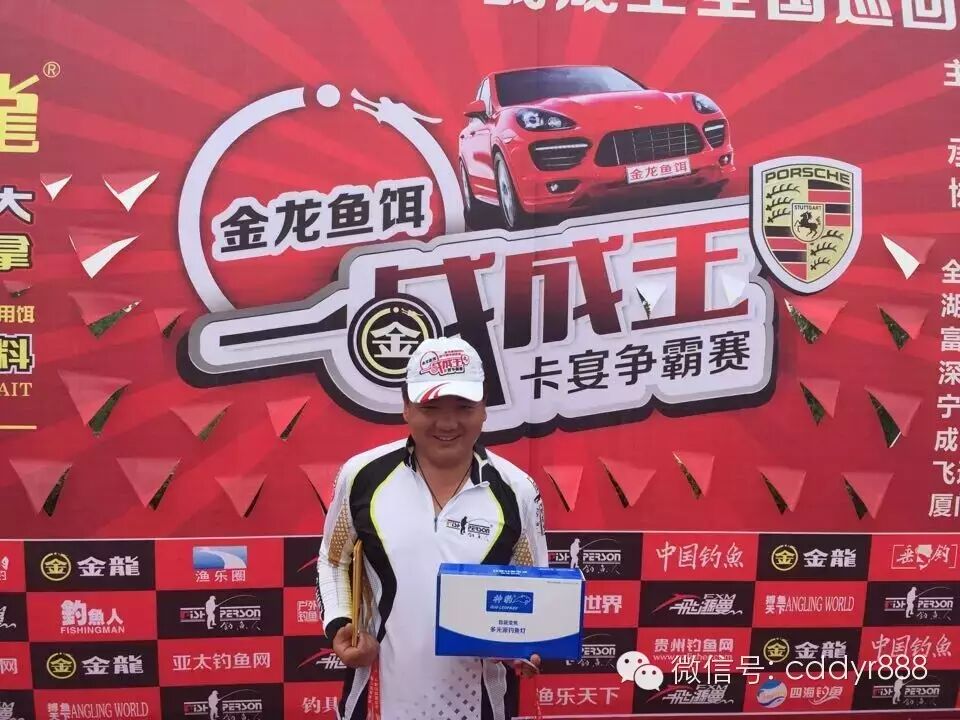四川金龙鱼饵有限公司董事长左贤金为冠军蹇宗宇颁奖!