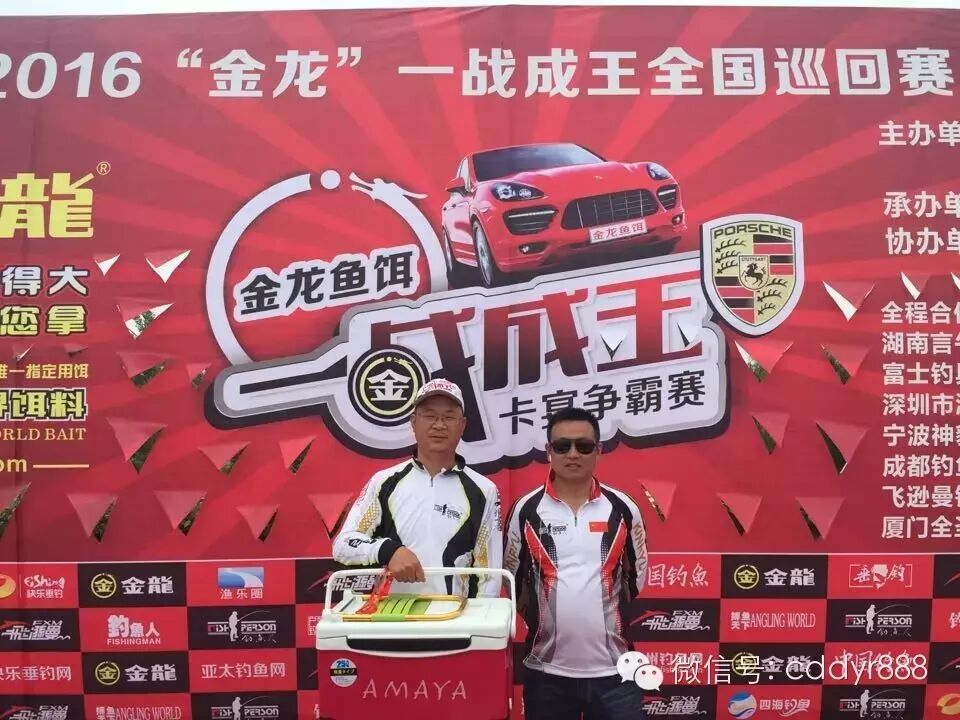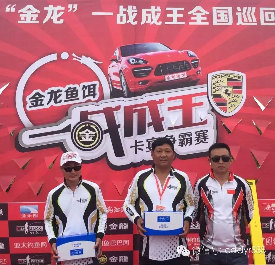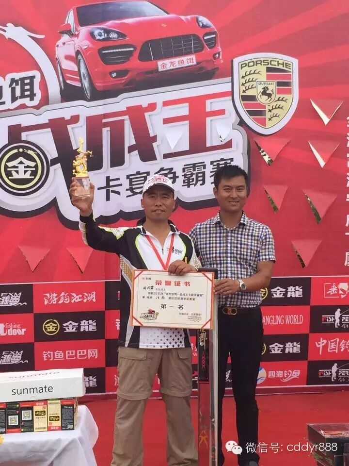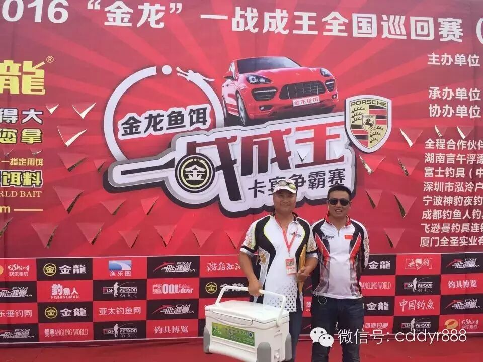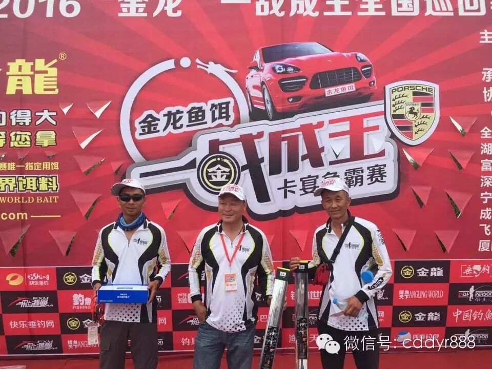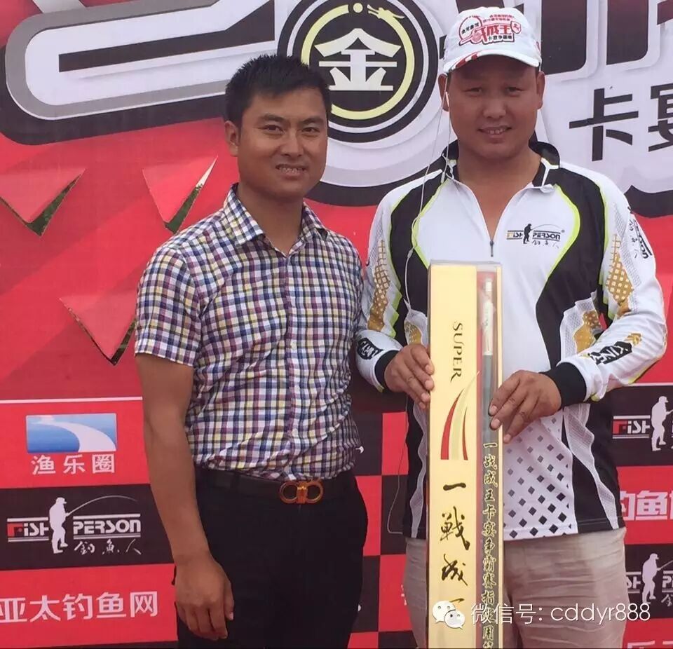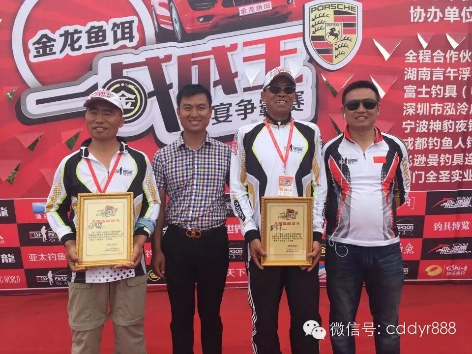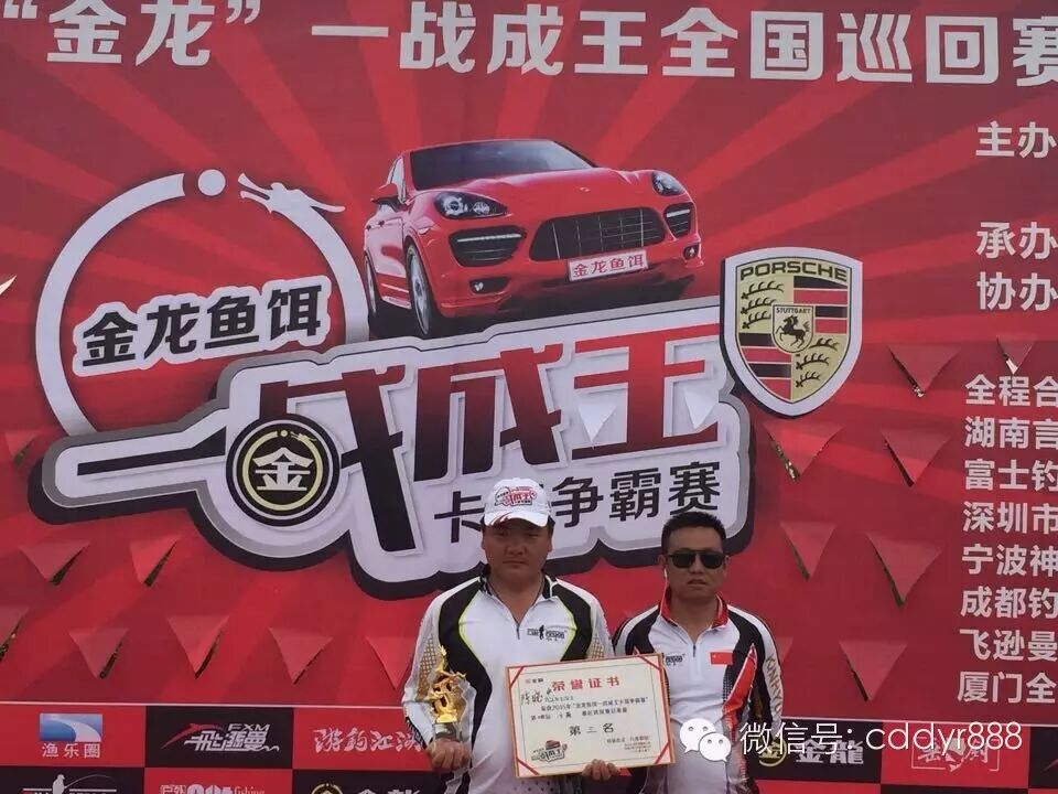 四川金龙鱼饵有限公司董事长左贤金为冠军蹇宗宇颁奖!