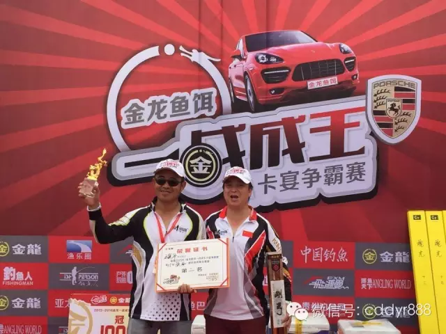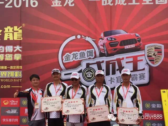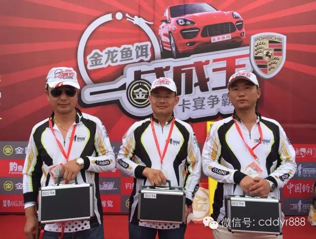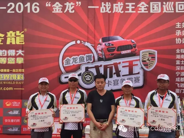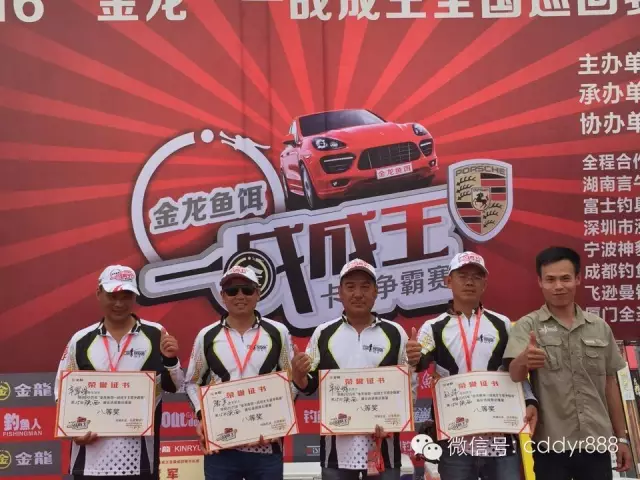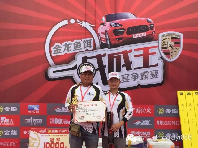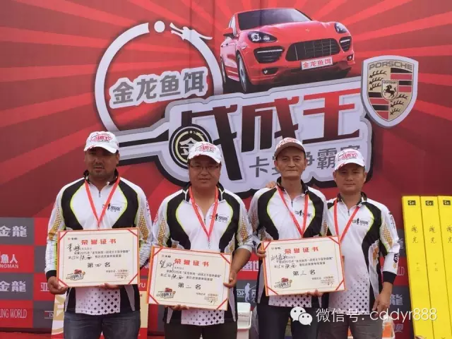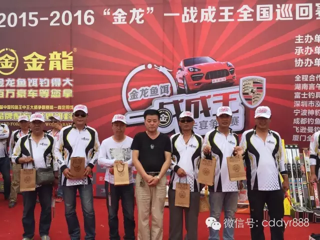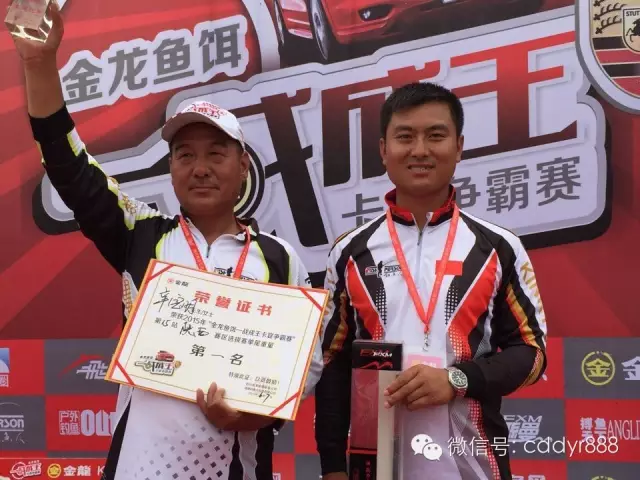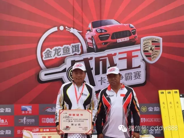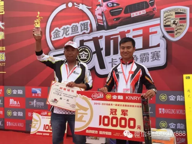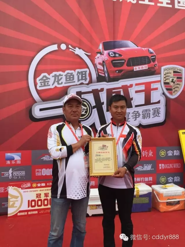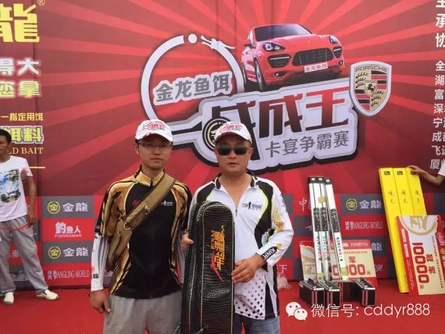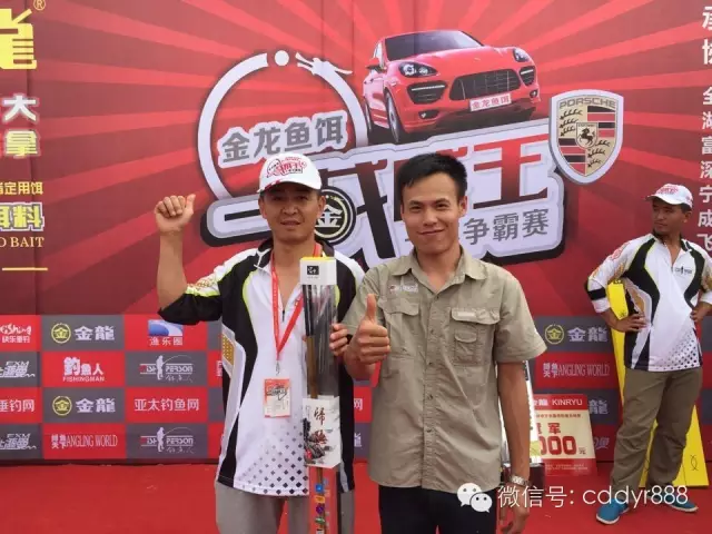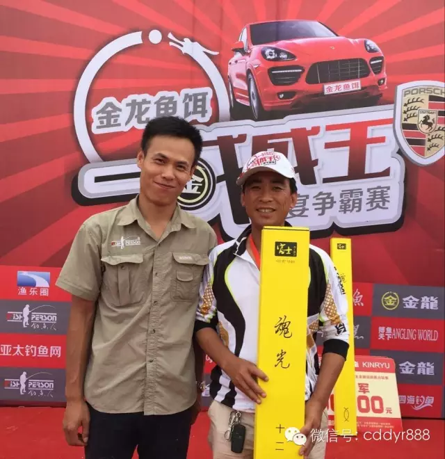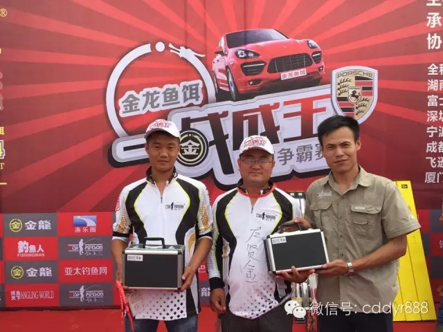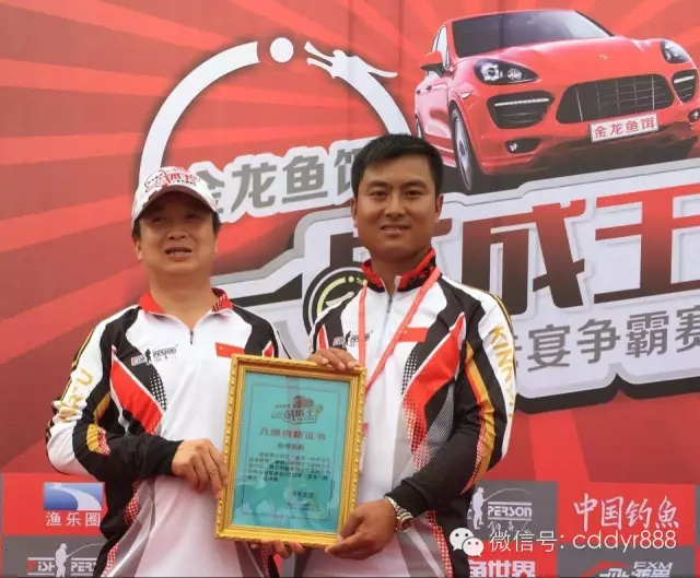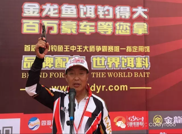 四川金龙鱼饵有限公司董事长左贤金为冠军付万江颁奖!