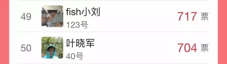 | 排名 | 票数 | 报名编号 | 姓名 |