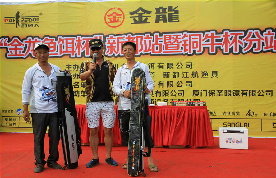 本次比赛由四川金龙鱼饵有限公司主办,四海钓鱼频道承办、新都江航渔具,也得到了成都钓鱼人钓具有限公司、台湾保圣眼镜有限公司、四川索莱德暖通设备有限公司、湖南言午浮漂的大力支持。