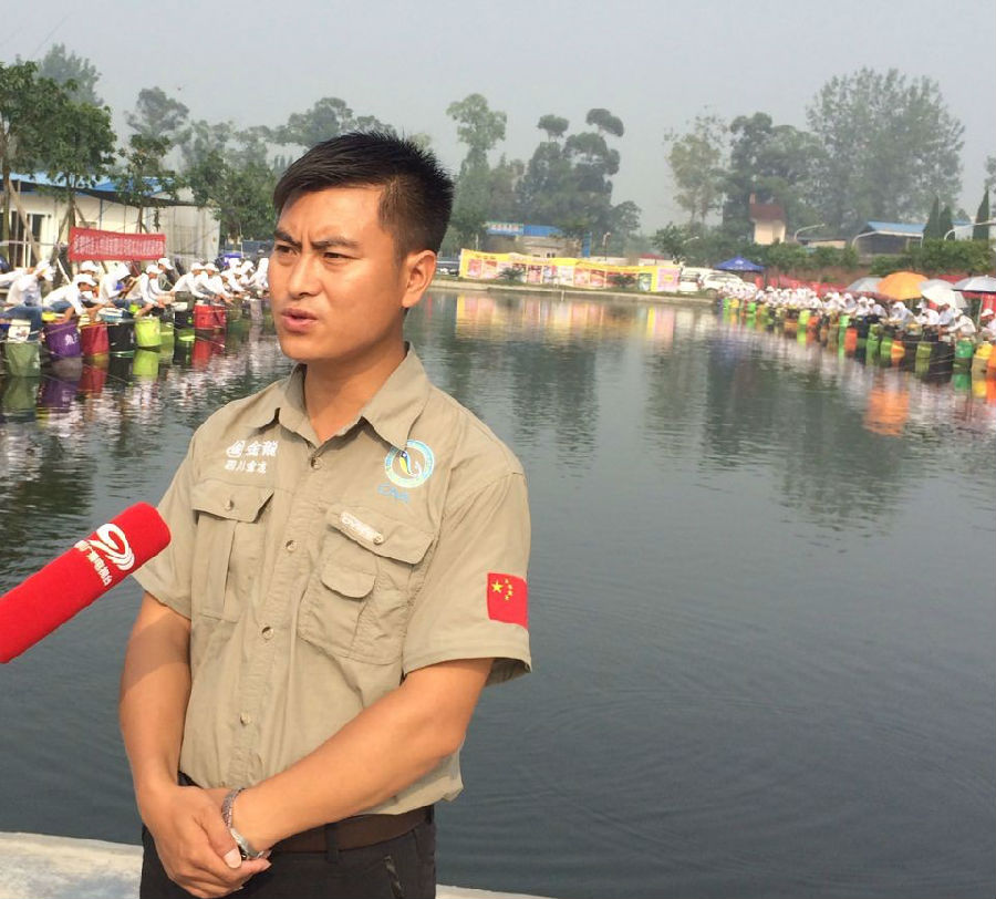 四川电视台来到现场报道并采访了四川金龙鱼饵有限公司、成都钓鱼人钓具有限公司总经理左贤金。