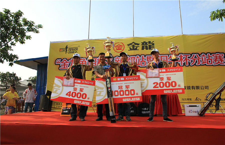 金龙鱼饵有限公司总经理左贤金为冠军获得者颁奖