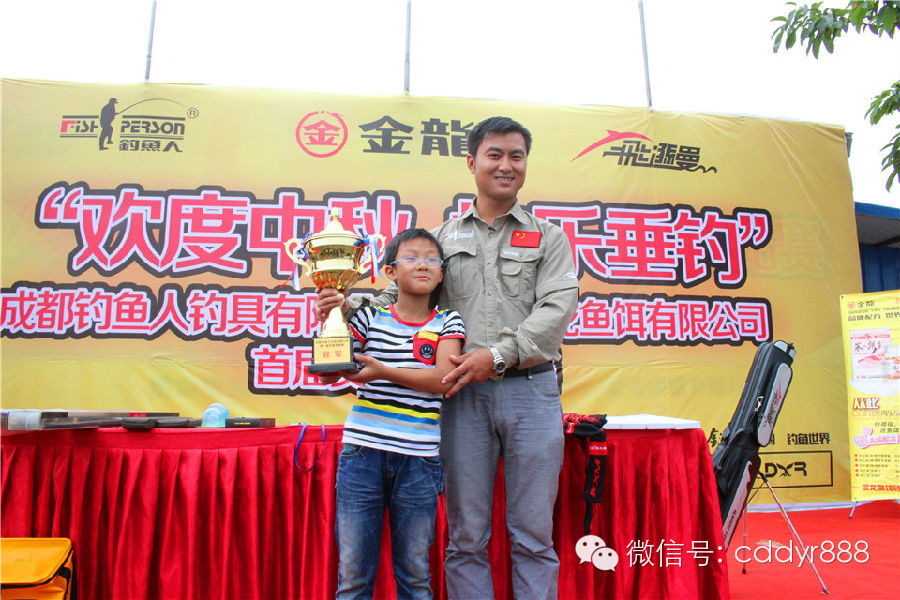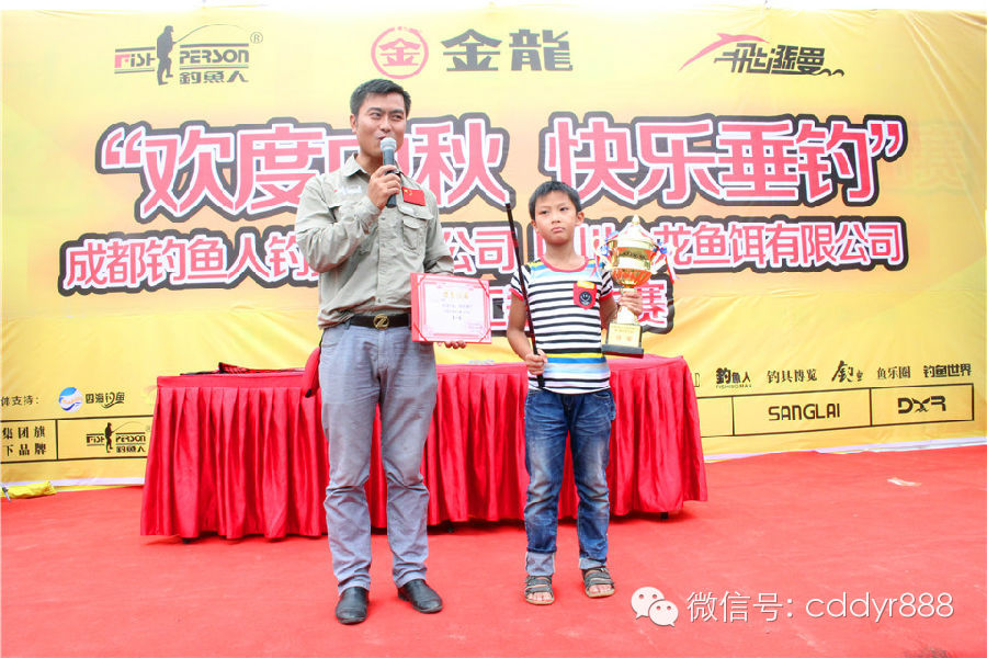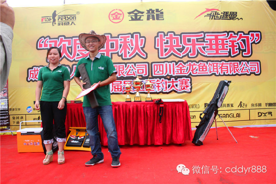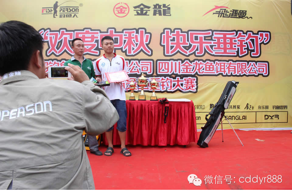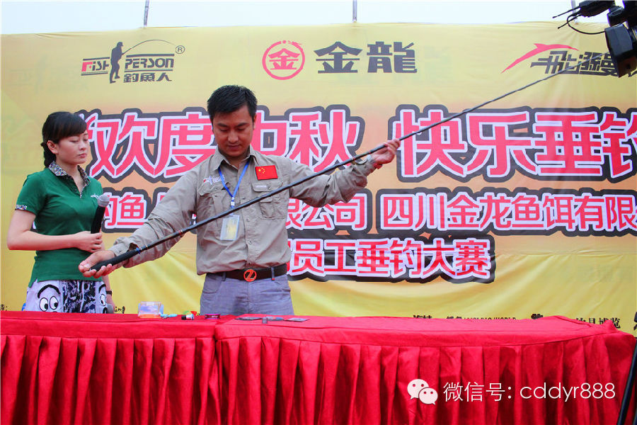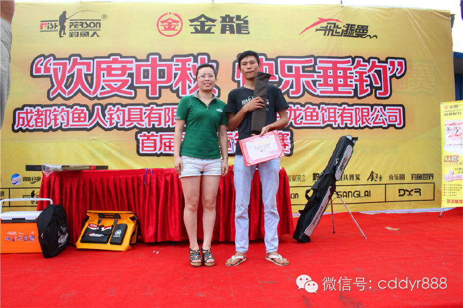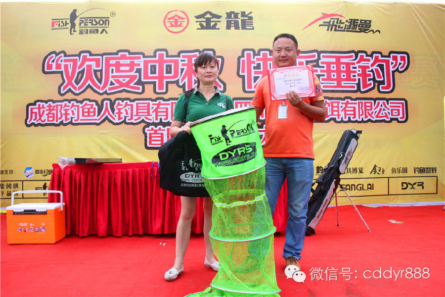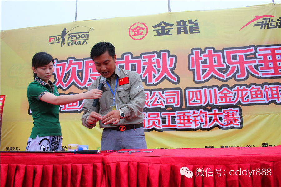鱼钩生产部主管为第六名颁奖钱建伟颁奖,他获得的是钓鱼人鱼护一个价值160元。